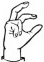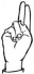 На ћирилици написано РАДНА БАЛЗАМОВИЋ састоји се из 15 слова [?]. Исписано ћириличном једноручном азбуком за глувонеме: